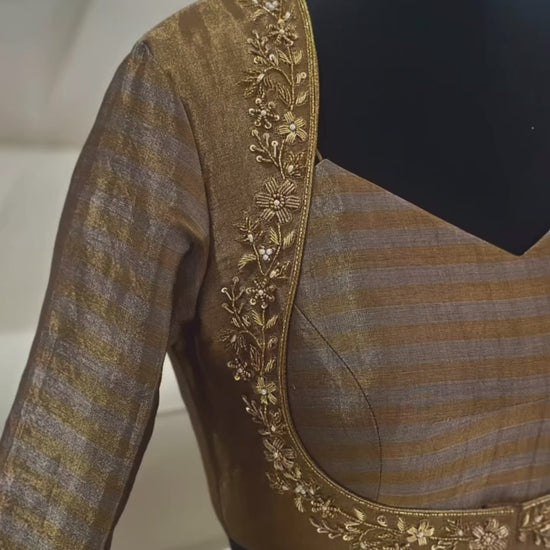 The Dusk Gold Aura Blouse is Vinyasa India’s reimagining of the festive blouse , crafted as a versatile two-piece ensemble that effortlessly transitions from classic to contemporary.