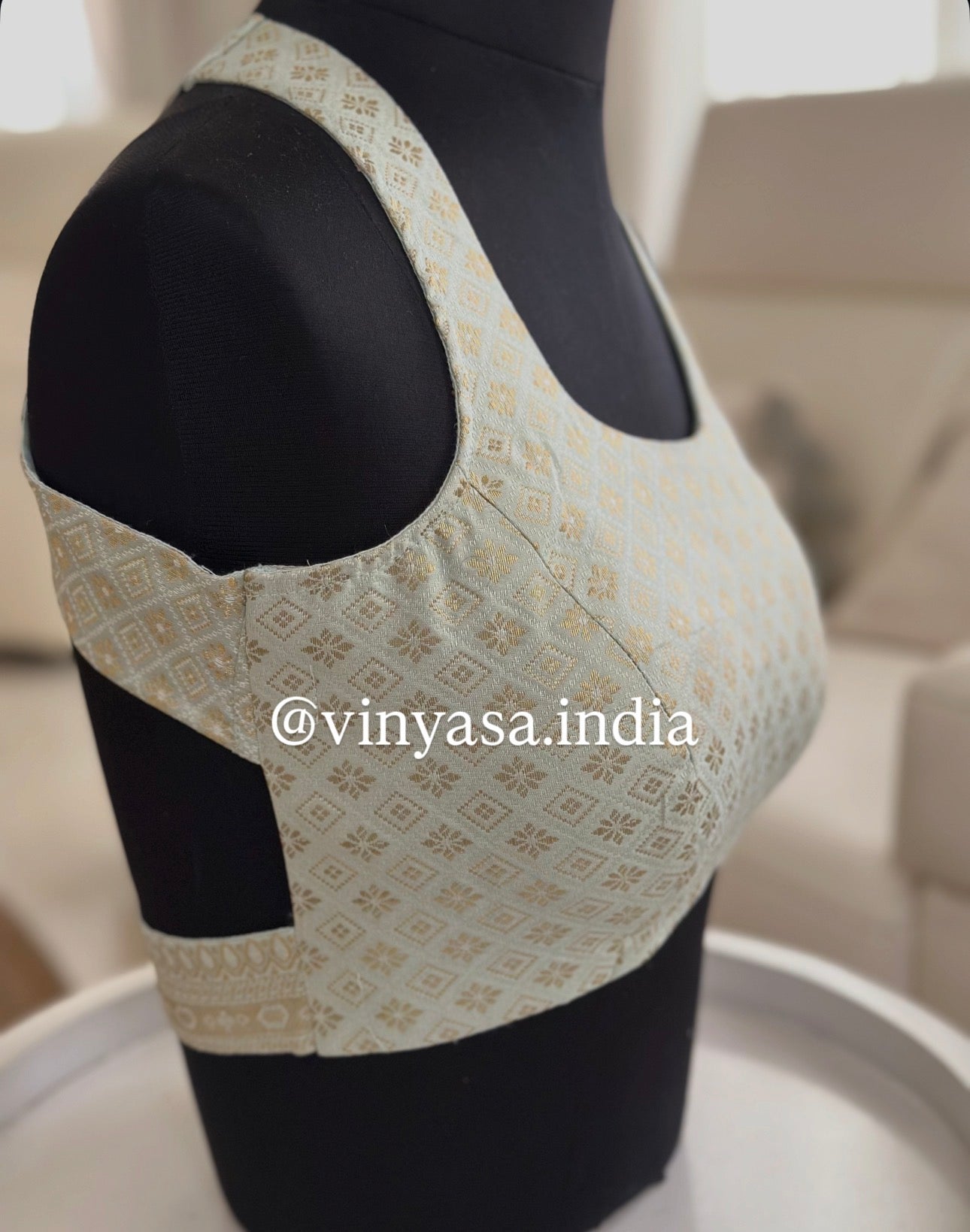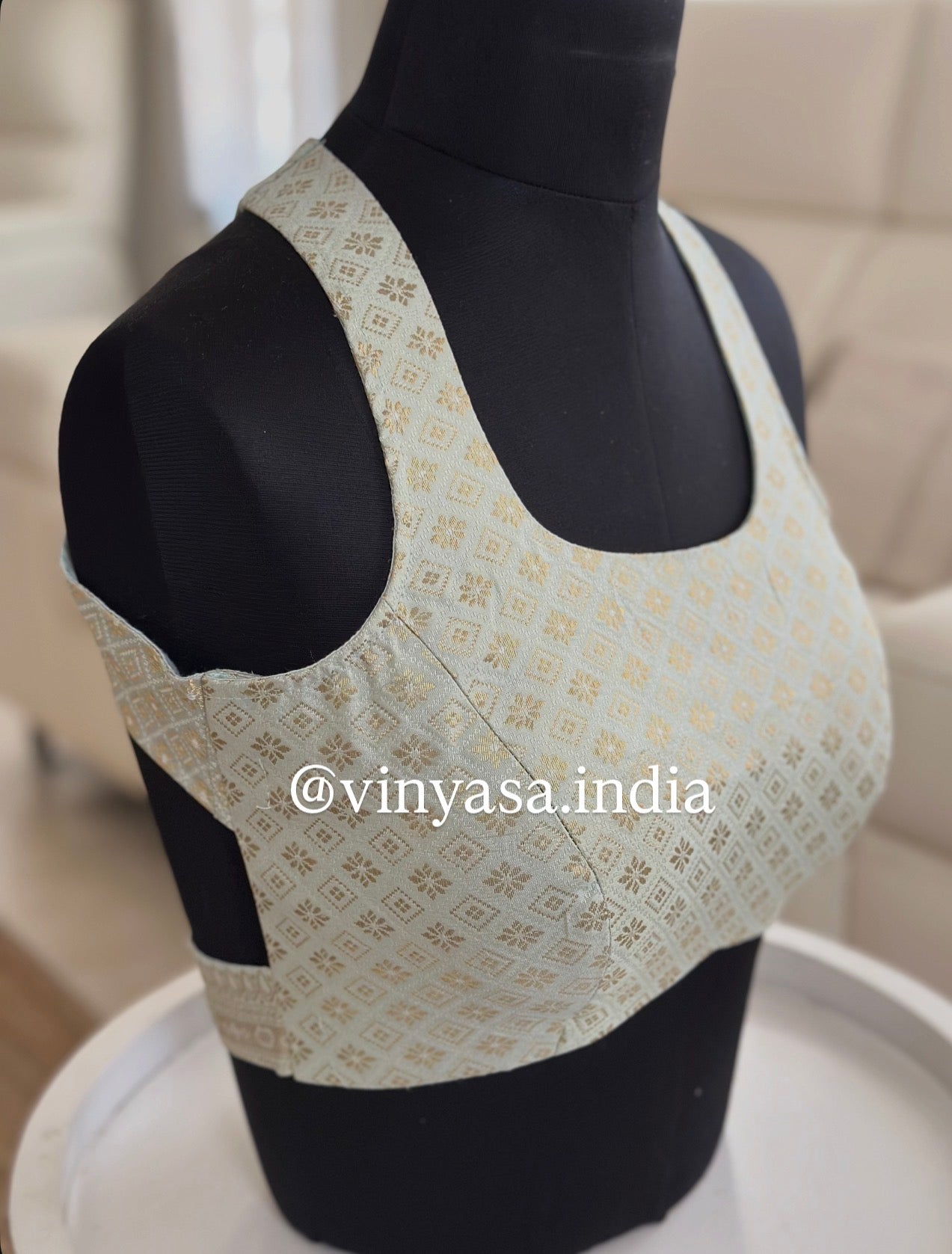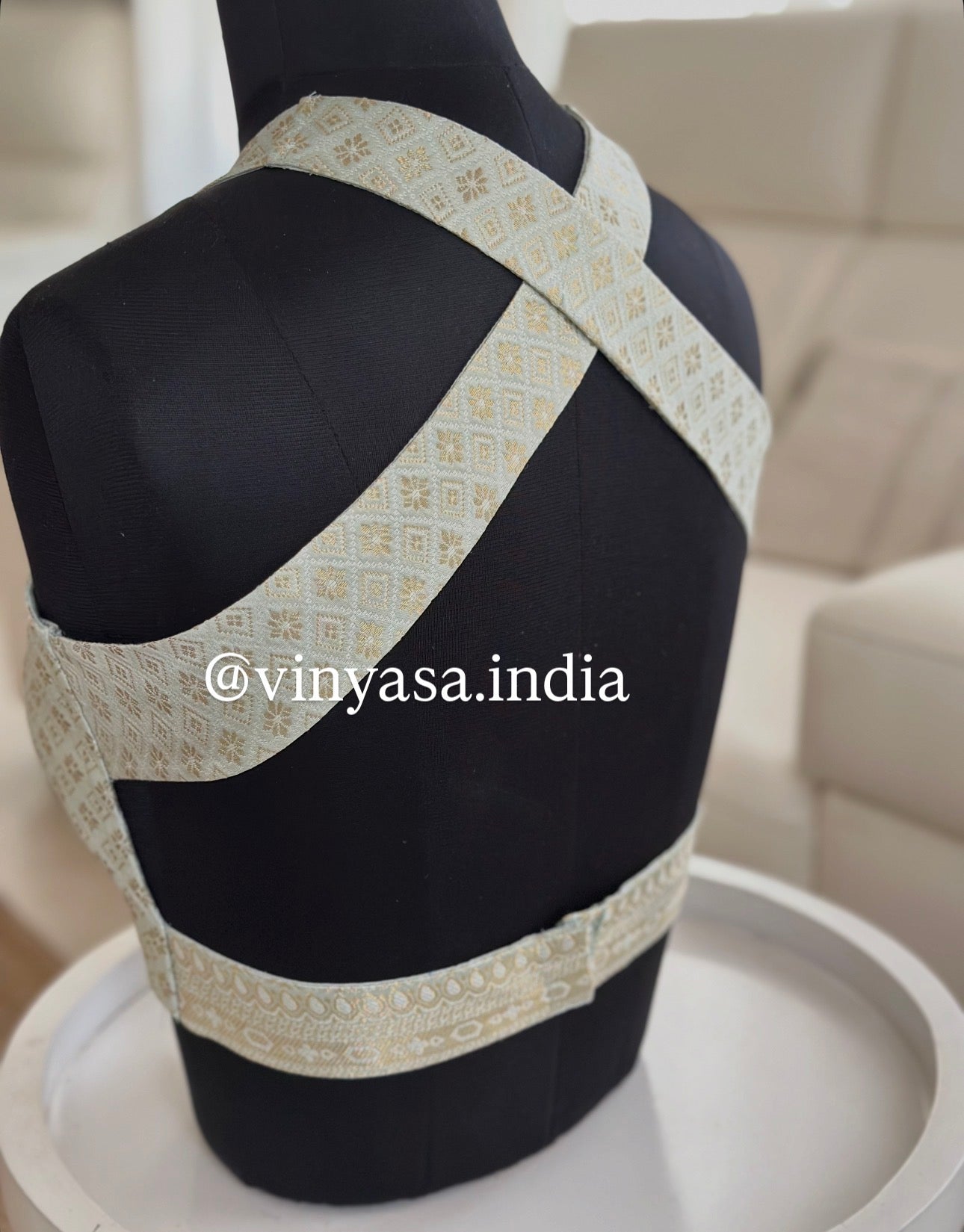 The statement lies at the back , a striking cross-strap detail that frames the shoulders beautifully while adding modern edge to a heritage weave. Designed to pair seamlessly with silk sarees, tissue drapes, or classic kanjeevarams, this blouse is a forever piece sophisticated, versatile, and undeniably heirloom-worthy.