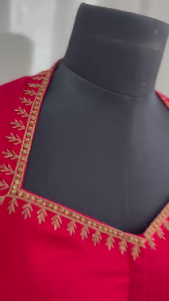 - Embroidery: Hand-embroidered zari motifs on neckline, sleeves & back border