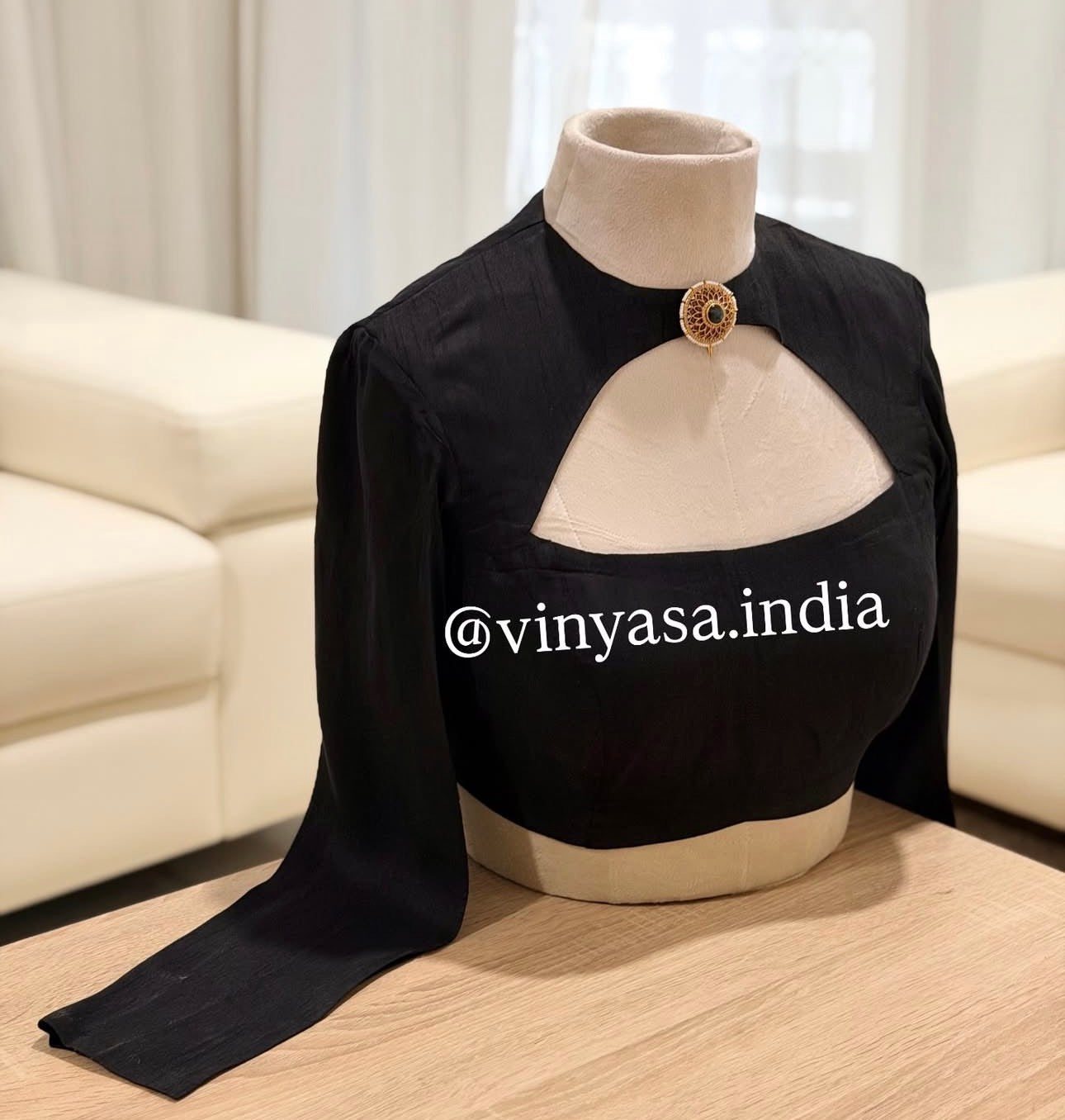 Designed with full-length sleeves and a structured silhouette, this blouse balances strength and refinement. Whether paired with heritage silks or contemporary drapes, it stands out for its clean lines, thoughtful detailing, and timeless appeal.