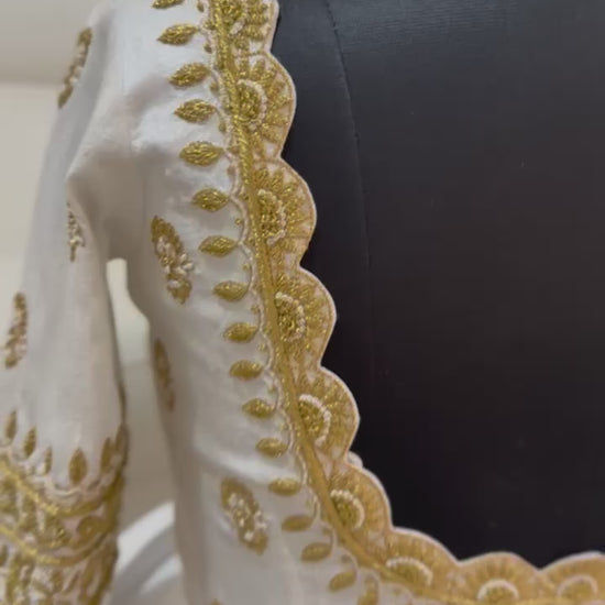 - Colour: White with antique gold embroidery